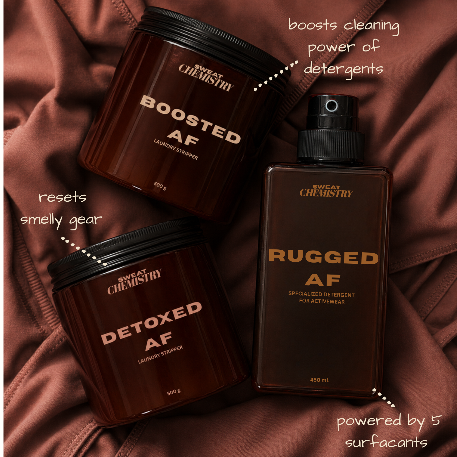 Ours is different. Sweat Chemistry uses a pH-balanced formula and five targeted surfactants to clean deep without damage. This helps your gear last longer, look better, and perform like new.